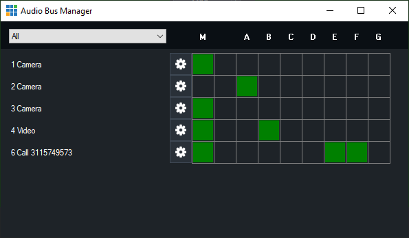 Audio Bus Manager allows bus assignments for all inputs from a single window.