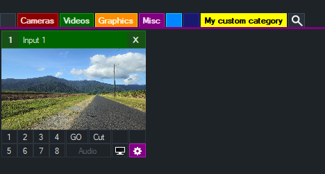 Inputs can be placed into up to six (6) built-in colour coded categories and up to sixteen (16) custom categories.